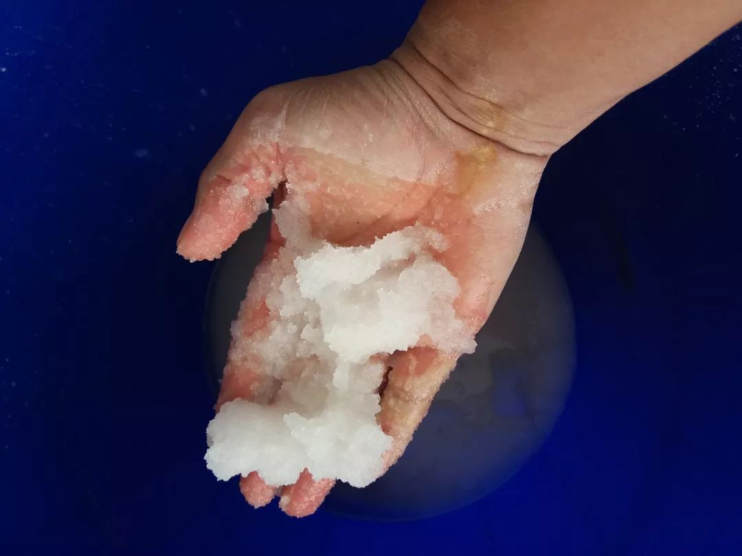 ②溶解肥料时未进行充分搅拌,且一次性倒入大量肥料导致肥料沉入底部后,局部浓度过大,远远超过其溶解度,同时部分肥料在溶解过程中属于吸热反应(例如硝酸钙、尿素、硝酸钾)急剧降温使肥料出现重结晶现象。