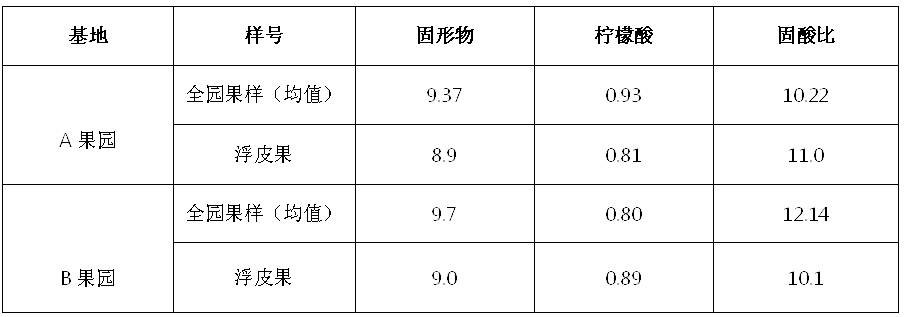 同时期A、B两个果园正常果固形物均高于浮皮果